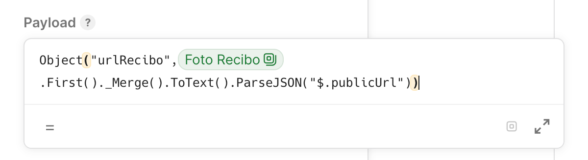 Na parte do “Payload”, adicione a seguinte fórmula:
