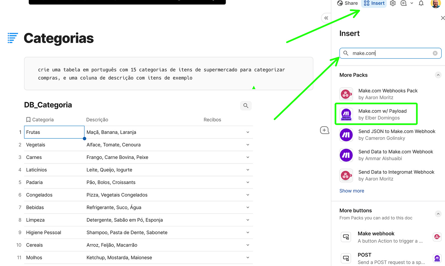 Use Coda, Make.com e IA para automatizar a categorização de recibos.