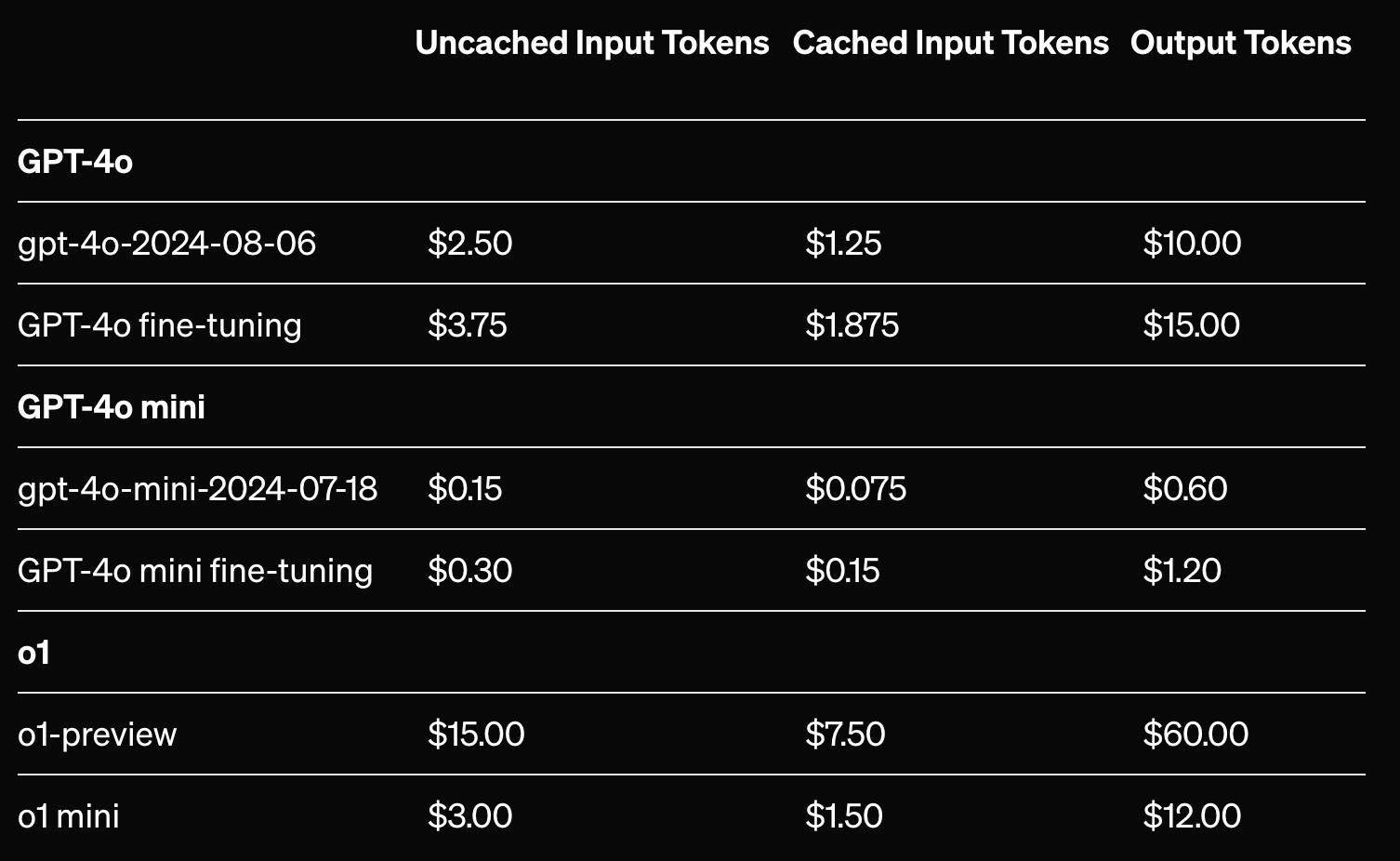 We’re offering 1M training tokens per day for free through October 31, 2024 to fine-tune GPT-4o with images. After October 31, 2024, GPT-4o fine-tuning training will cost $25 per 1M tokens and inference will cost $3.75 per 1M input tokens and $15 per 1M output tokens. Image inputs are first tokenized based on image size, and then priced at the same per-token rate as text inputs. More details can be found on the API Pricing page.